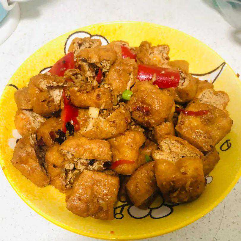 ⚬每次下班不知道吃什么的时候总会想起这道菜——爆汁油豆腐。喜欢上油豆腐应该是打火锅的时候,放下去咕嘟咕嘟一会儿就能收获吸饱了汤汁的油豆腐。吹凉后咬一口就汤汁四溢,那种感觉真是太美妙了~