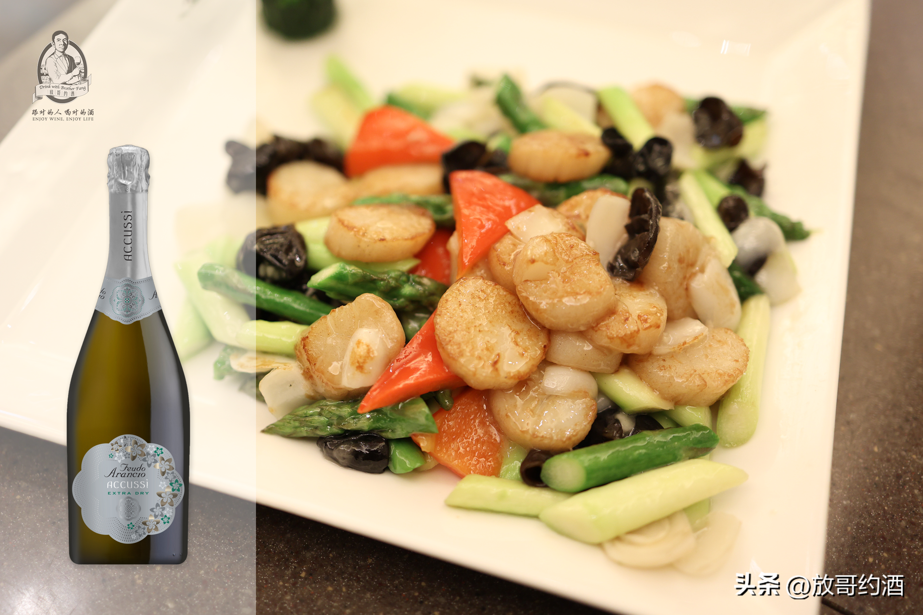 1、生猛带子如意炒VS意大利橙色庄园绝干起泡酒