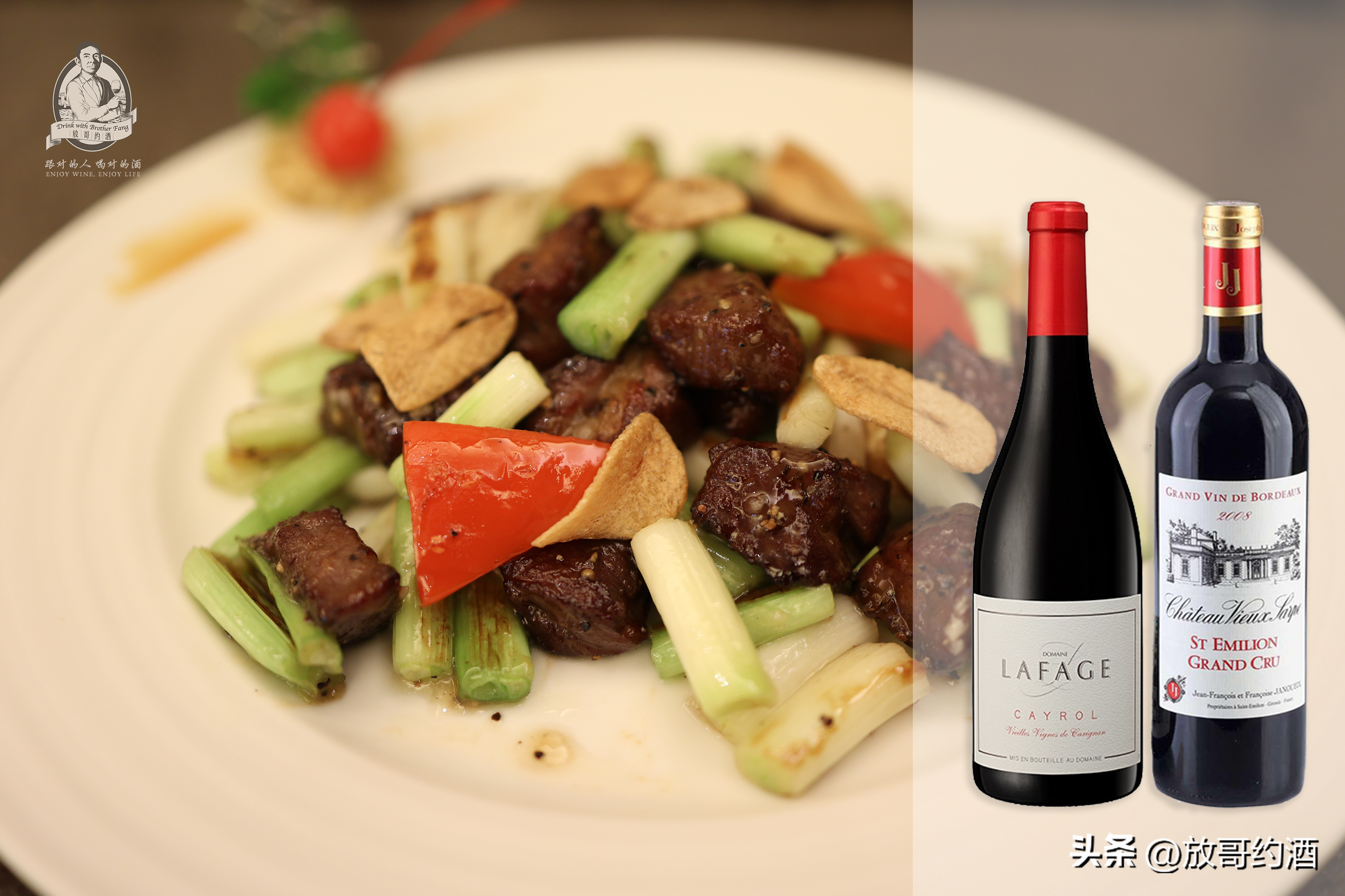3、葱爆日式牛柳粒VS法国拉法齐凯洛老藤佳丽酿干红、法国老萨普城堡干红