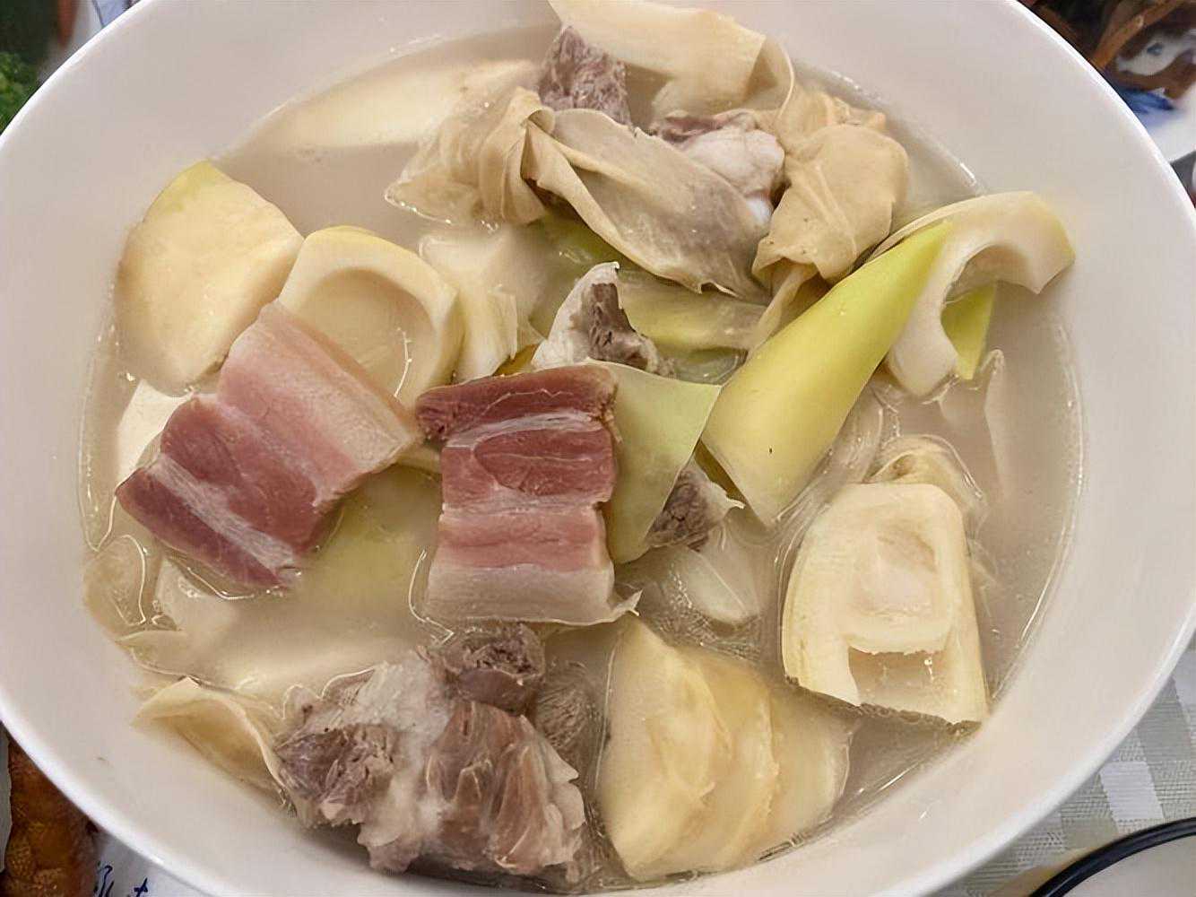 16.腌笃鲜:腌笃鲜是上海本帮菜中最具代表性的菜色之一,源自徽菜的本帮代表菜色。腌笃鲜的做法以春笋与鲜、咸五花肉片一起炖煮,成汤口味咸鲜,汤白汁浓,肉质酥肥,笋清香脆嫩,鲜味浓厚。