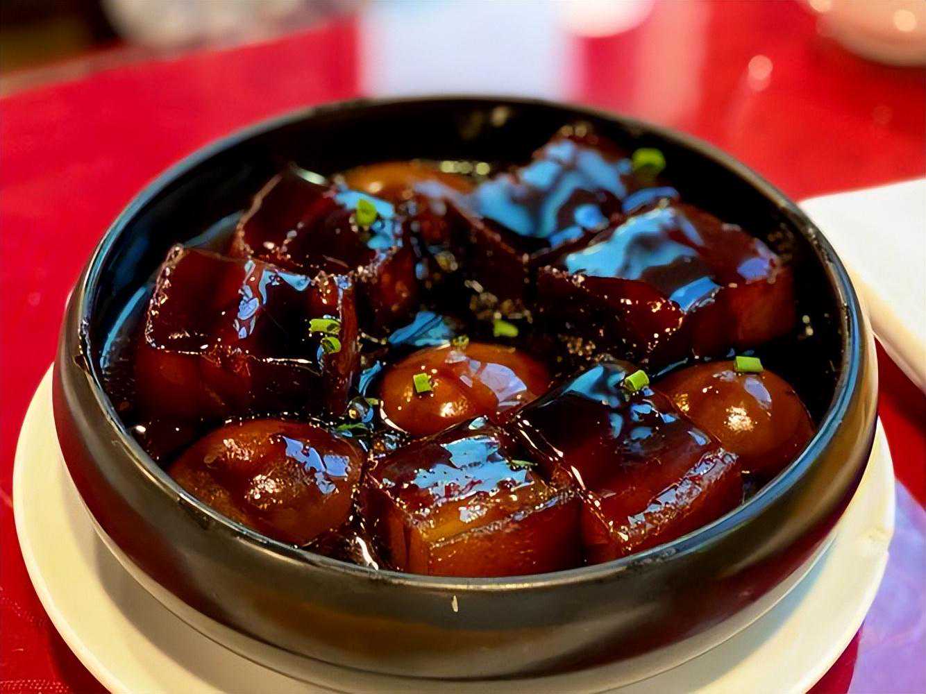 22.上海红烧肉:上海红烧肉是一道美食,由五花肉、酱油、酒、糖等材料制作而成。这道菜能体现出浓油赤酱的特色,靠火候功夫,可以做出肥而不腻、酥而不烂、甜而不粘、浓而不咸的味道来。