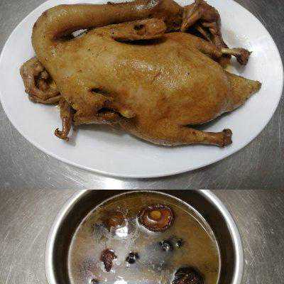 9、加入陈皮,冰糖,生抽,老抽,甜面酱,啤酒,加水没过鸭鸭,加入鹌鹑蛋。