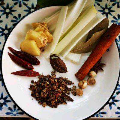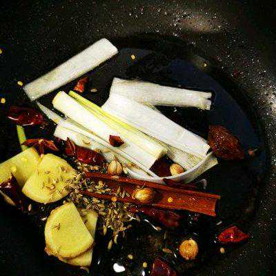7、锅中放入各种香料炒香。