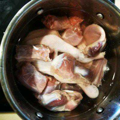 5、锅中放水,放料酒和姜片,焯水后洗净。