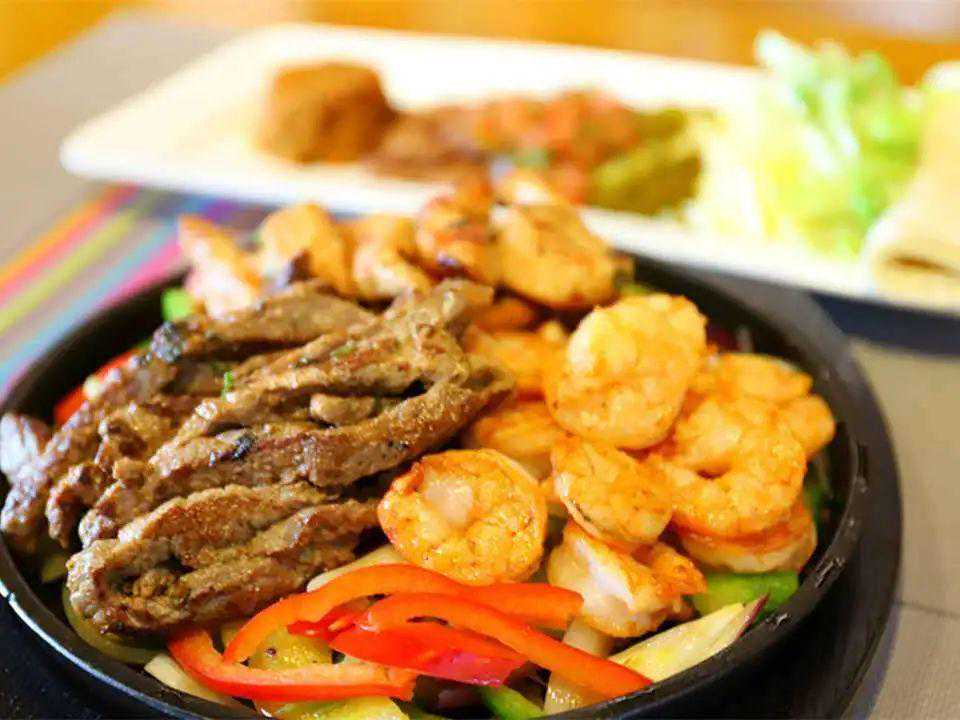 牛肉法士达有点像裹大饼的铁板牛肉,端上来的时候热气缭绕,肉香扑鼻。烤肉本身的调味很简单,只有胡椒和盐,另外配了一盘子各种酱和薄饼卷着吃。底下垫的洋葱烤得软软的,吸饱了肉汁,简直比肉还好吃。老墨的国酒龙舌兰放在小shot杯里,杯沿上抹好了盐,盖了半片柠檬,暗示你它的正确打开方式。别小看这无色透明的一小杯。它简单粗暴,价格便宜,不需要小口慢饮,一仰脖直接灌下去就对了,是墨西哥版的烧刀子。