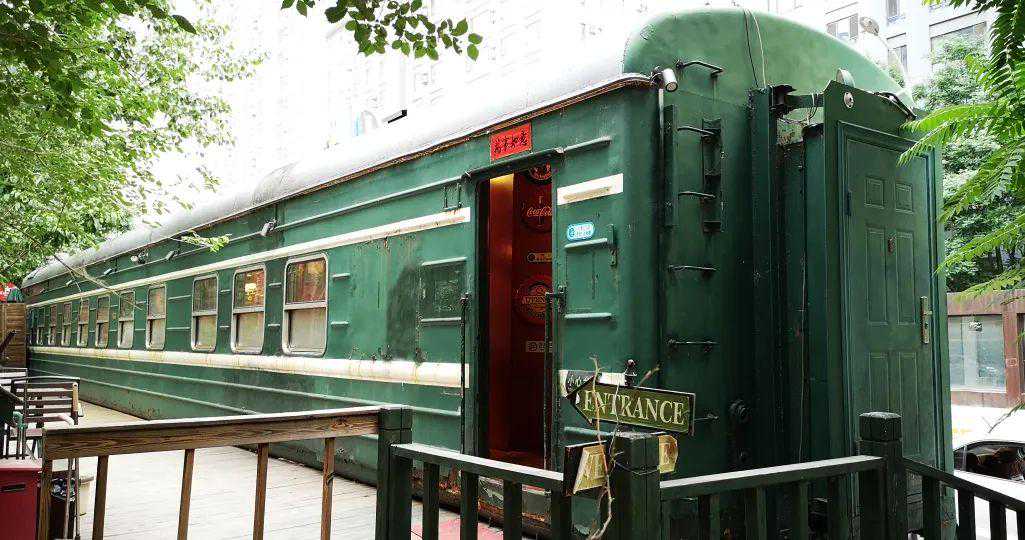 远远望见一节真实的绿皮火车停在路边,虽然TO君不是火车迷,内心还是有一点小激动——实在是非常有趣的一个体验。若不仔细看车头上蓝色的刀叉logo和英文店招,匆匆路过的人很可能以为这是个什么大型装置艺术。餐厅的入口不临马路,在车厢背阴的另一侧,那一侧还有个同样狭长的露台,也兼任吸烟区。