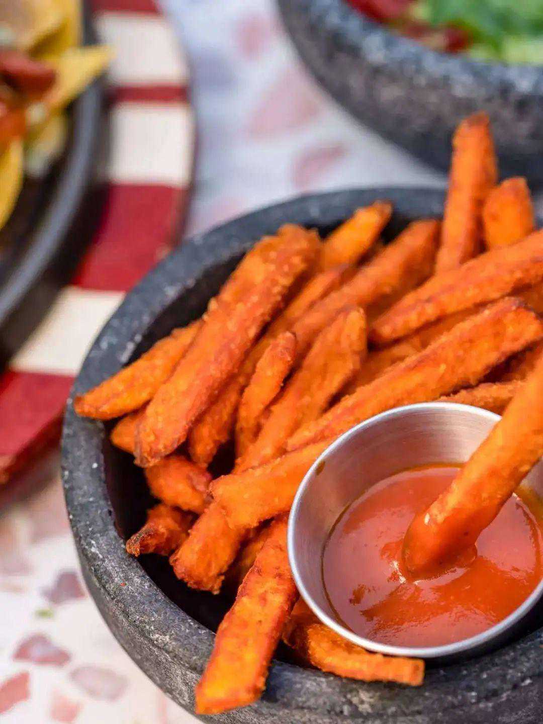 红薯条一生推啊一生推,吃完这一盘多进一次健身房也值了。饿的话来一份塔可,这里的馅料种类非常丰富,炭烤和牛、尤卡坦烤鸡肉、炭烤猪肉、西班牙辣肠以及素食,必有一款适合你。玉米片就不说了,加一杯现调的阿佩罗科拉达,坐露台上慢慢享受浮生半日闲,音乐也配合得恰到好处,把各种烦恼都丢在楼下马路上吧。