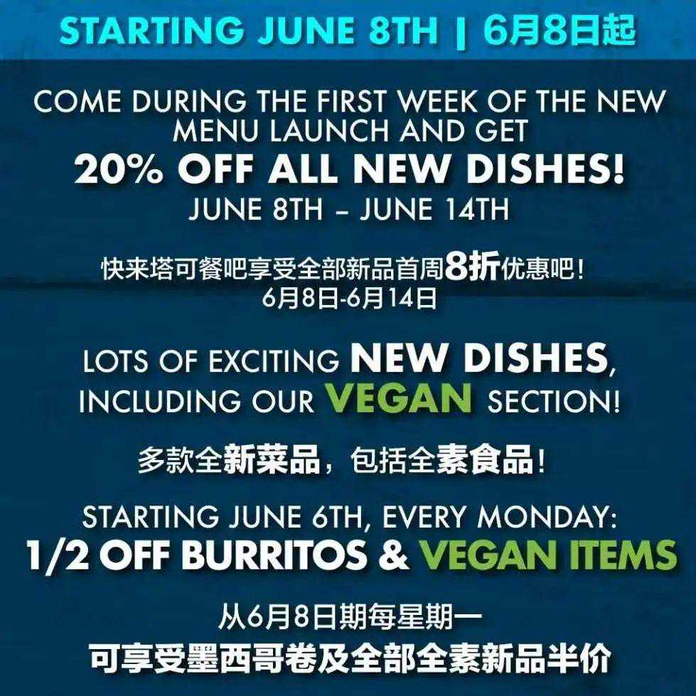 *新菜单及活动仅限库迈塔可餐吧(新源里店)