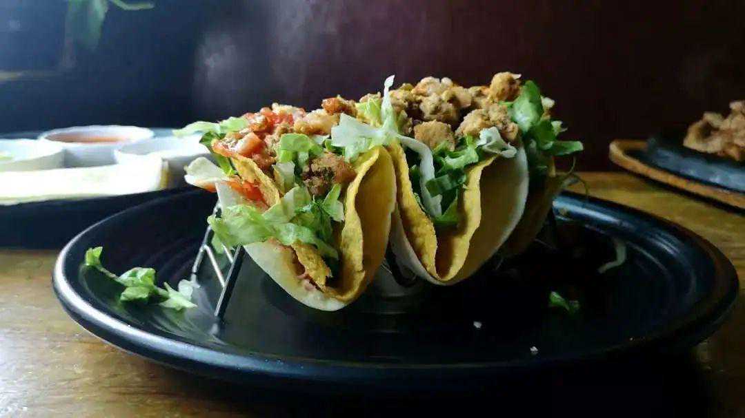 第一次去的推荐来一份塔可组合,一份4只涵盖了4种经典口味:烤牛肉、烩牛肉、烤鸡肉和纯素。饼皮有软硬两种可选,像TO君这样热爱玉米片的人当然毫不犹豫就选了脆的。以酸奶油、牛油果酱、番茄莎莎和墨西哥腌渍辣椒调味的塔可健康低脂又分量十足,4只一份的组合最好是两人分享。
