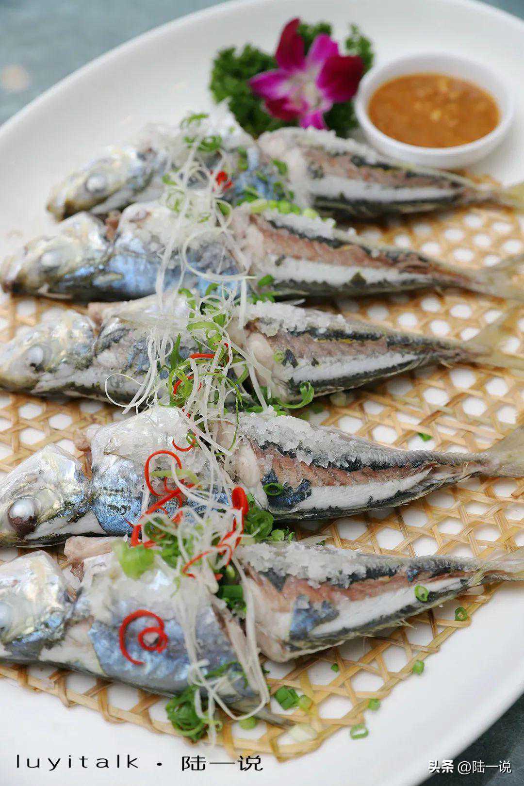 还有唯二养殖比野生贵的巴浪鱼,肚圆腰鼓,肥厚细嫩!然后再炒个时蔬,店家送上猪皮冻、海蜇头、老醋花生等精美三小蝶,这一餐,满足。