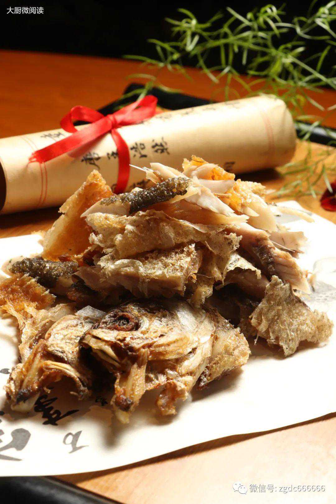 2.选用每条重约600克的大白鱼,去鳞、去内脏,斩掉鱼尾,去掉中间的大骨,将鱼身纵向一剖为二,冲水后放入酒香蔬菜汁中腌制一天。