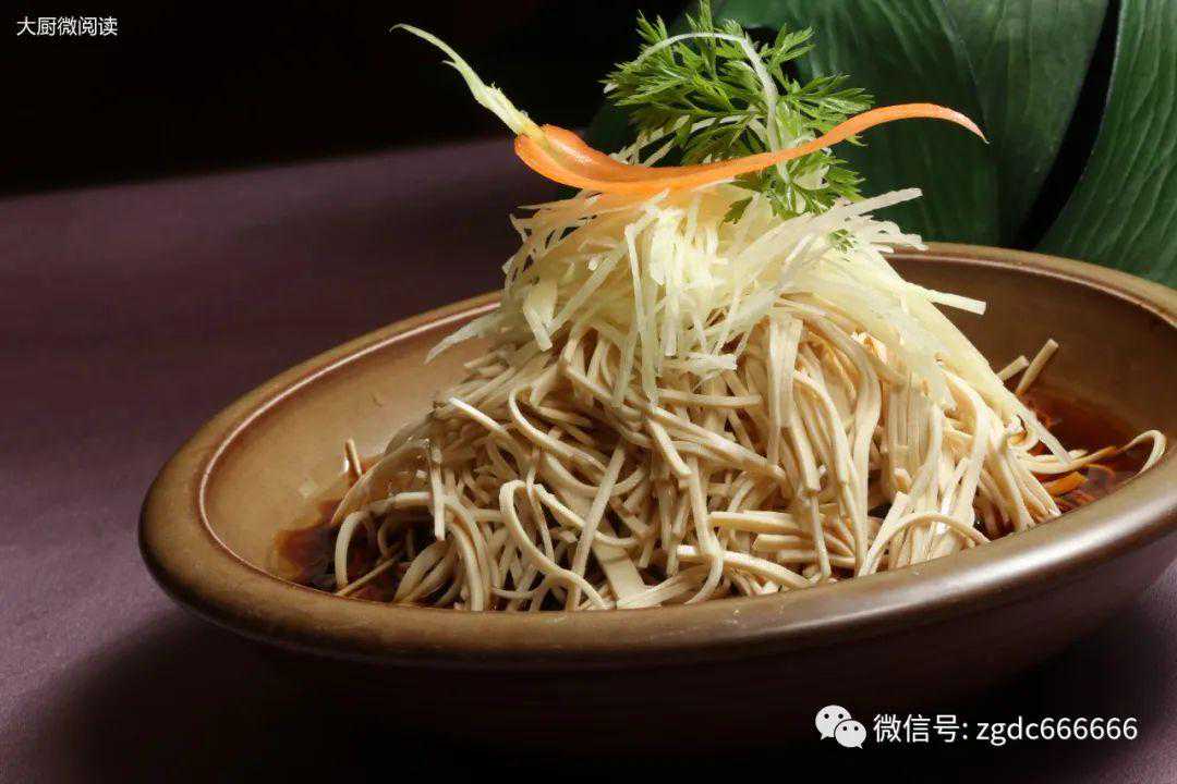 此菜以“热拌”的形式呈现,豆腐丝、土豆丝搭配自制鲜味汁,浇入热油的瞬间发出滋啦滋啦的响声,几秒钟后香味扑鼻而来,简单快捷、诱人食欲,将素菜做出别样滋味。