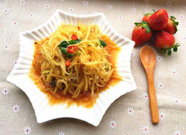 8:趁热烧在青木瓜丝上。