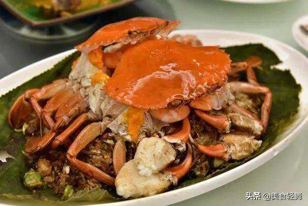 而鸳鸯膏蟹是广东汕头的传统名菜,腹中膏肥厚,味道鲜美,百食不厌,也因造型美观,一只呈清红色,一只呈精青色,成双成对,故而得名“鸳鸯膏蟹”,也是潮汕宴席上的一道佳肴,素有“膏蟹上席百味淡”的美称。