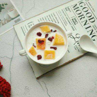 6、炖好的雪燕,再放入牛奶,冰糖调味,洒点蔓越莓干就可以美美的开吃啦