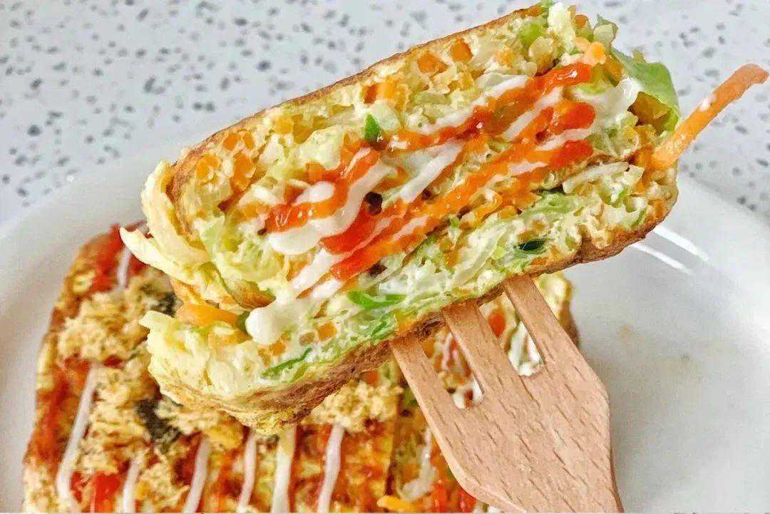 用卷心菜鸡蛋液煎熟后夹上西红柿片、火腿片、芝士片就是无面包版的卷心菜三明治,将卷心菜和鸡蛋液当做饼皮,撒上自己喜欢的配料还能变成卷心菜披萨和卷心菜热狗卷。