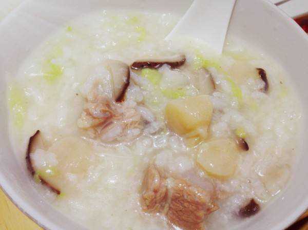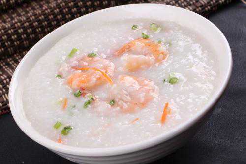 (2)加酒去腥炒熟,放入已煮稠的粥内,再加食盐即可。