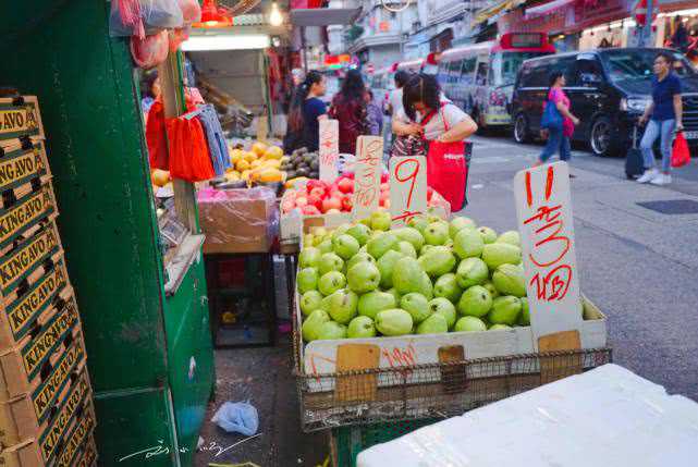 接下来继续逛其他菜摊,除了卖菜的,也有卖水果的啊,这是什么水果来着?番石榴吗?11港币3个,也就是10块钱3个,价钱很合理啊,不仅不觉得高,我甚至还觉得很便宜呢!
