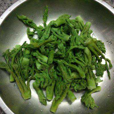 3、新鲜的刺老芽需要洗净后焯水,袋装的直接洗净即可,我买的袋装的,用水洗几次,然后攥干水分。