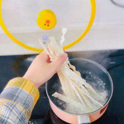 5、炒配料的时候,刀削面也煮软了,捞出来用冷水冲透,以防黏在一起