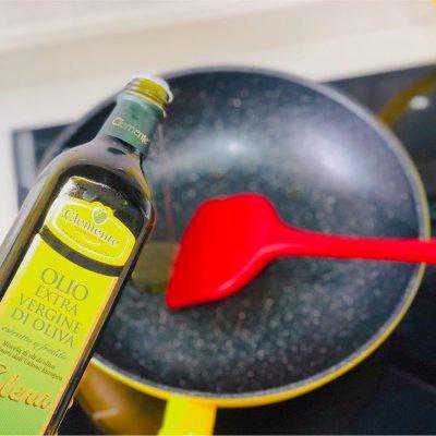 3、进行图②的时候,炒锅烧到一点烫,倒入橄榄油