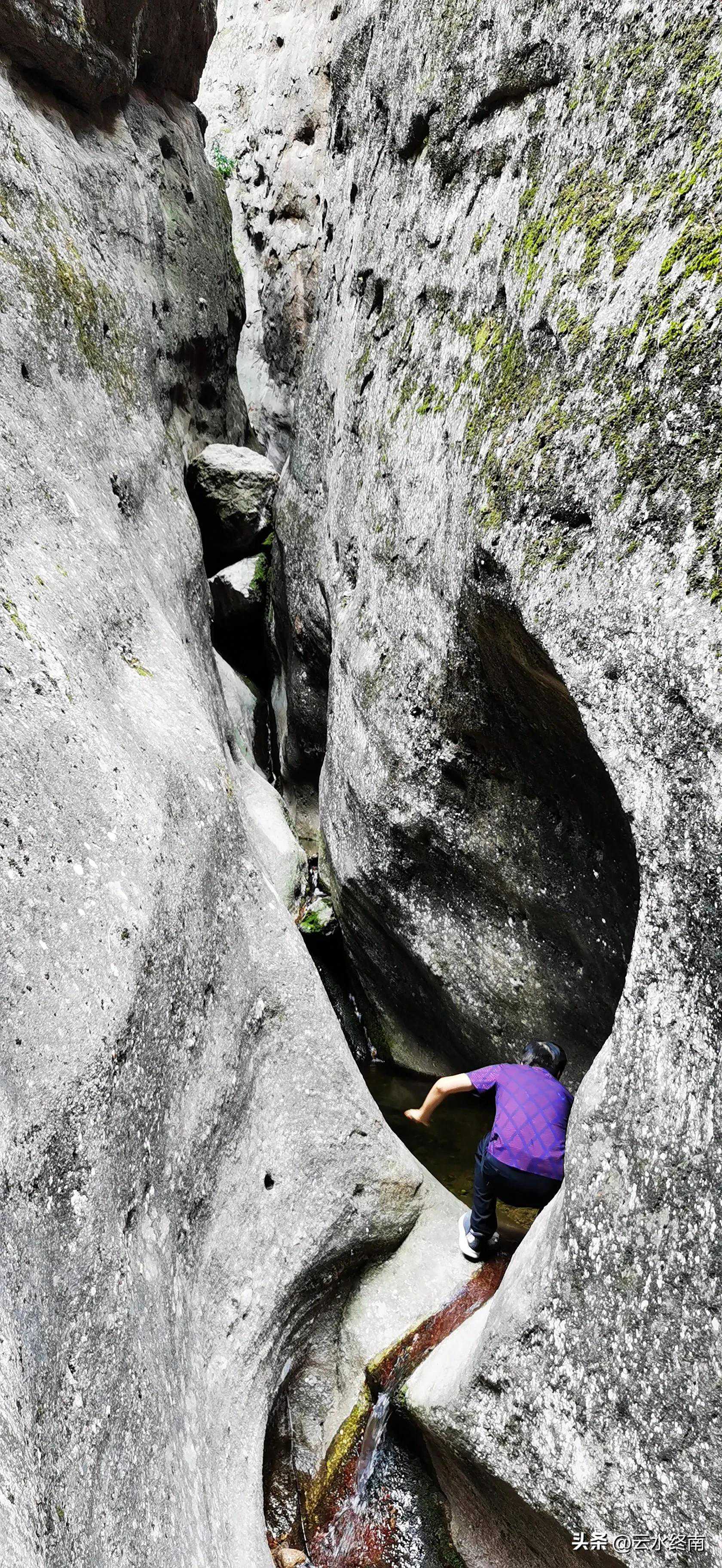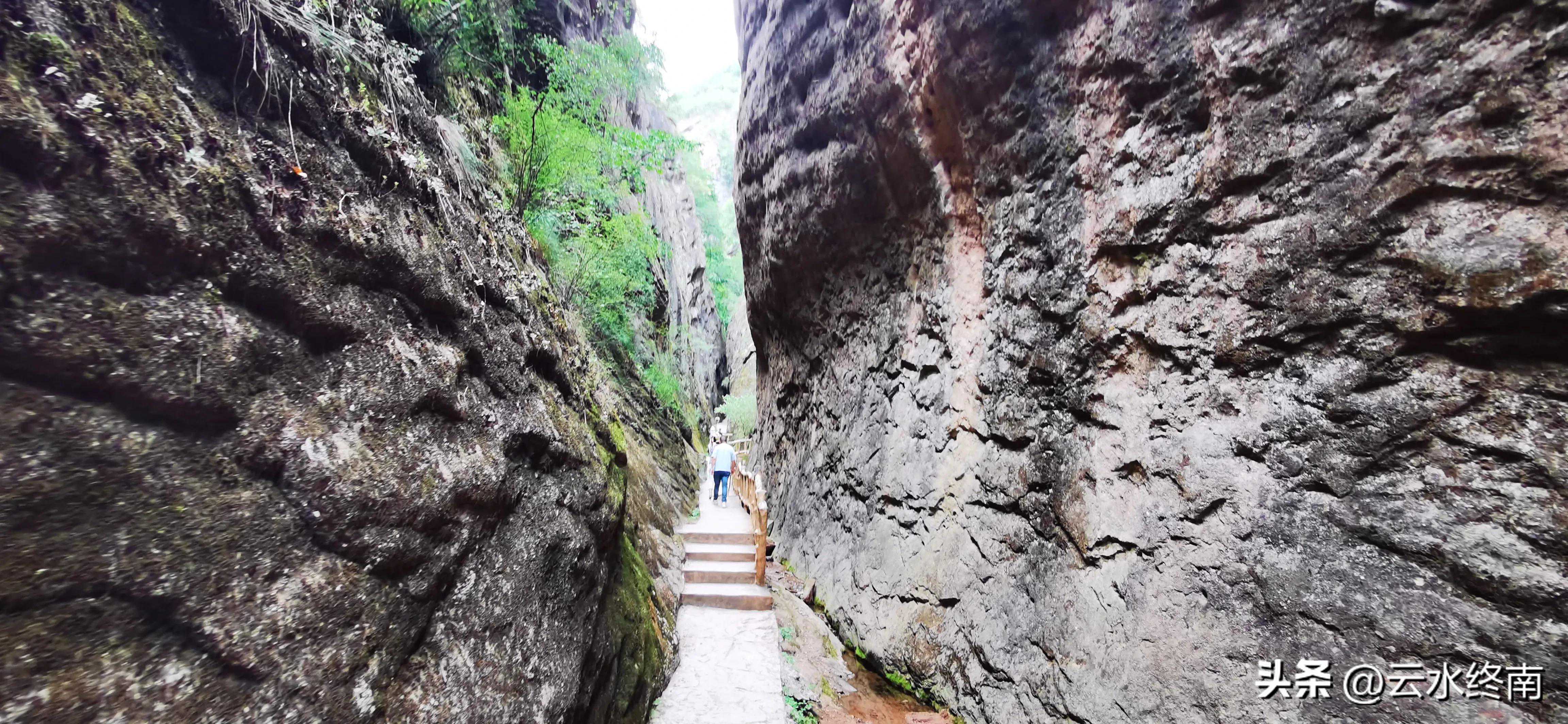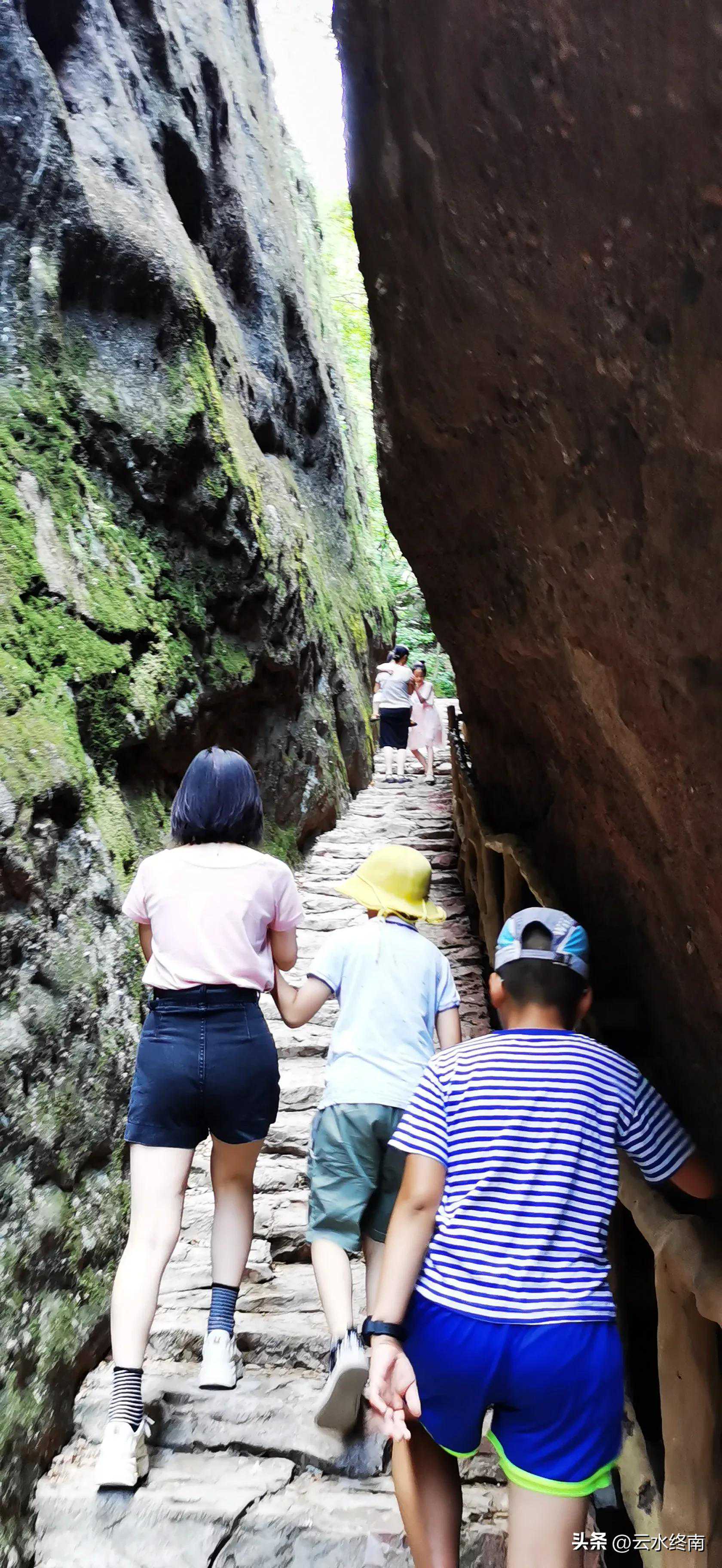 这要是顺着水走,路不是更窄了吗?抬头望天,真是一线天。