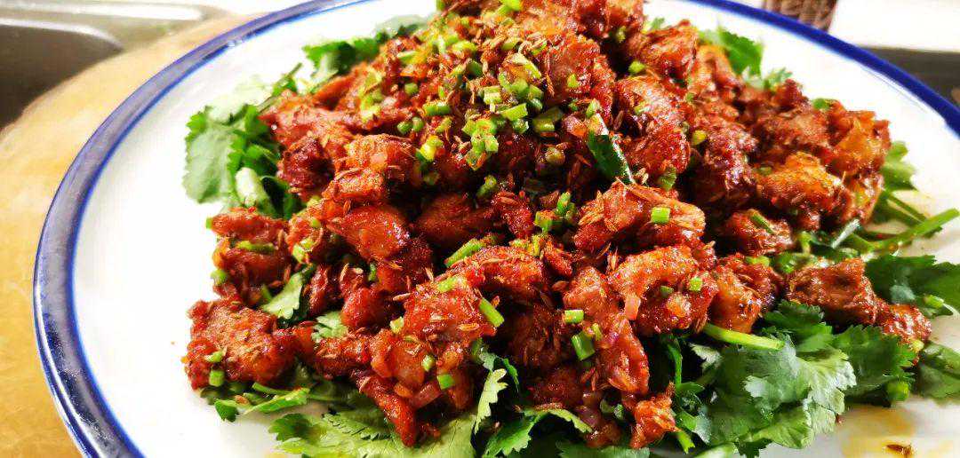 洋葱粒爆香,香味出来后,来点酱油倒入羊肉,翻炒,孜然粒撒进去,一定要让羊肉粒粒都沾上孜然,还可以撒点芝麻,辣椒面,喜欢吃辣的可以多来点,最后加入点睛之笔香菜叶,看着香,闻着香,吃起来更香。
