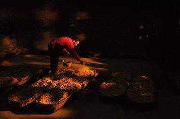 3、蒸粮蒸酒:窖上面是1~2甑面糟(回糟),故先蒸面糟。蒸面糟时,可在底锅中倒入黄水,蒸出的酒,称为“丢糟黄水酒”。蒸后的面糟成为丢糟,可作为饲料出售。