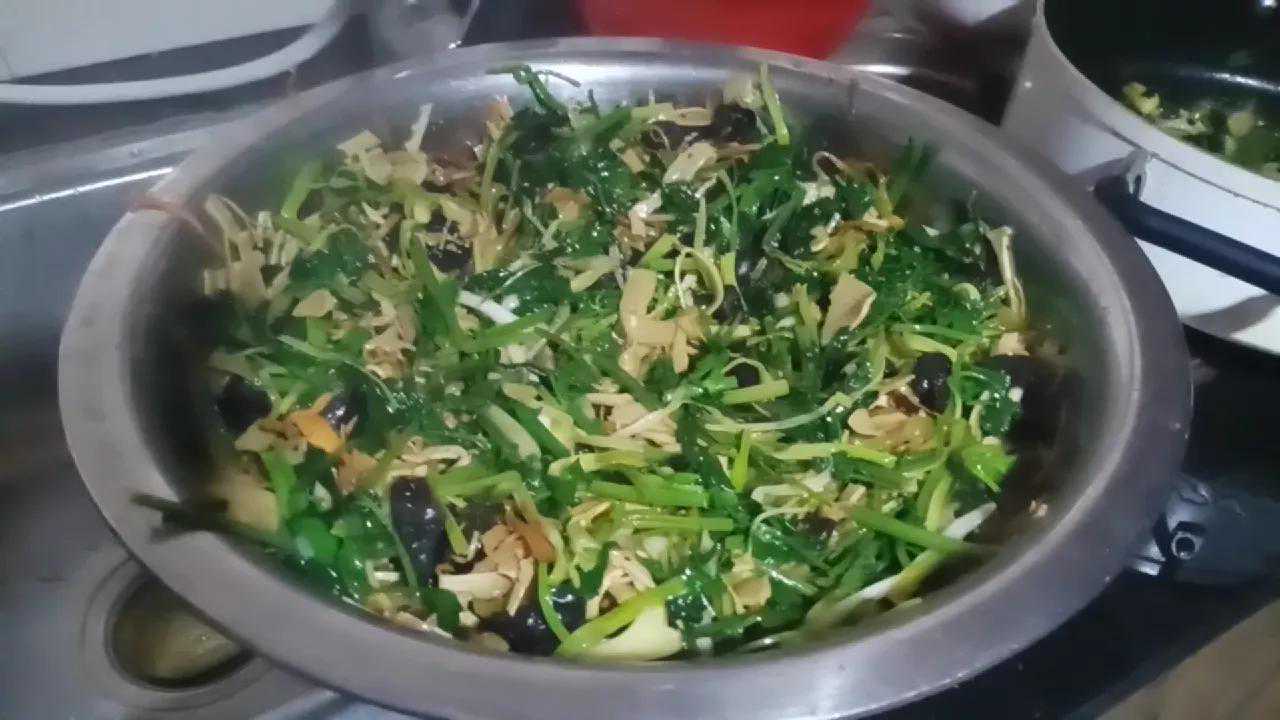 这是我们南方的特色菜!每逢过年的时候,每家每户都会烧这个道菜!意思来年发发发!八宝菜就是有八道菜!是八种不同的菜配合在一起!它的配料中是香菇,黑木耳,米笋,大蒜!芹菜!红萝卜丝,千张丝,冬菜!
