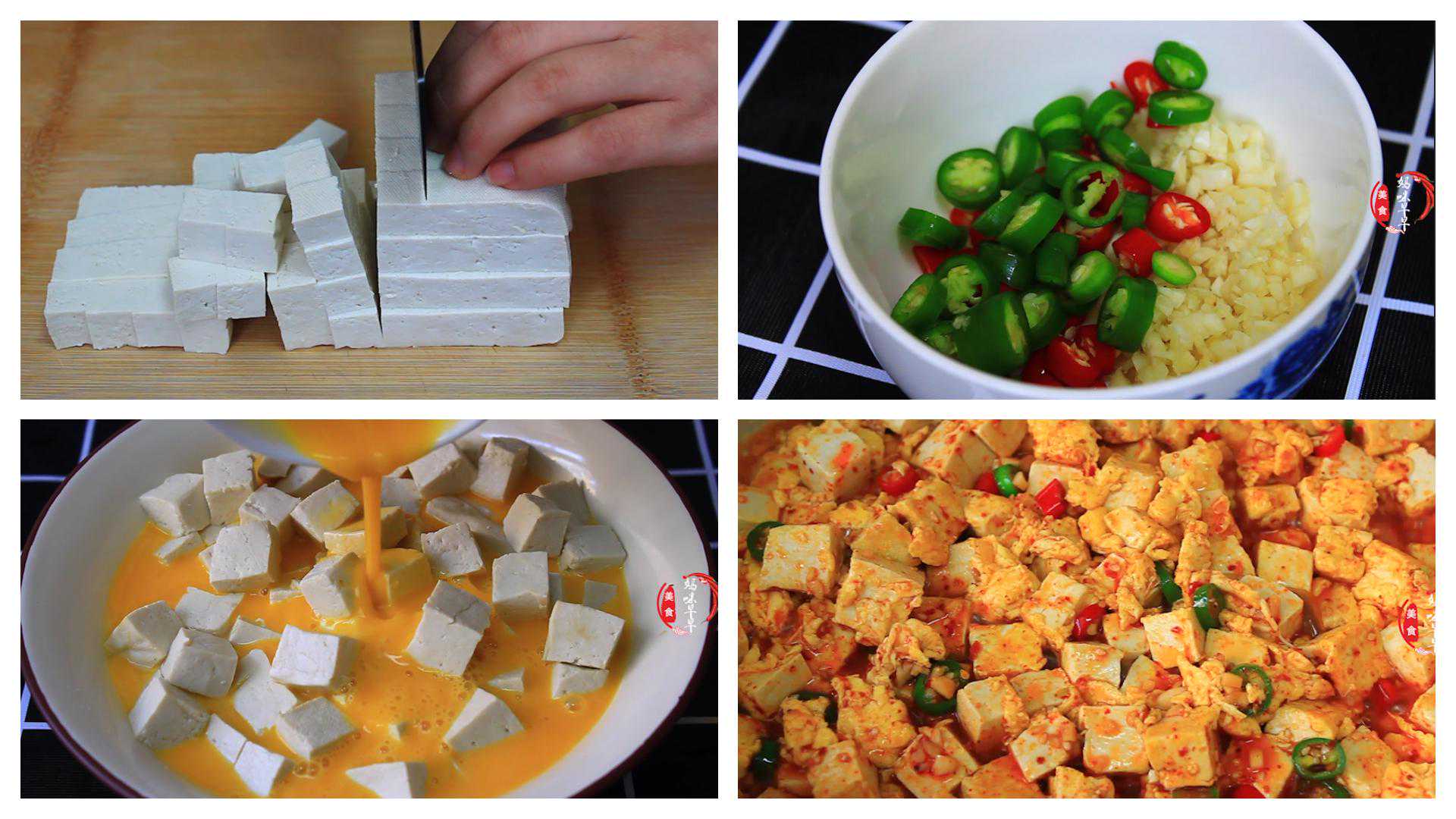 主要食材:豆腐、鸡蛋、大蒜、绿椒、红椒