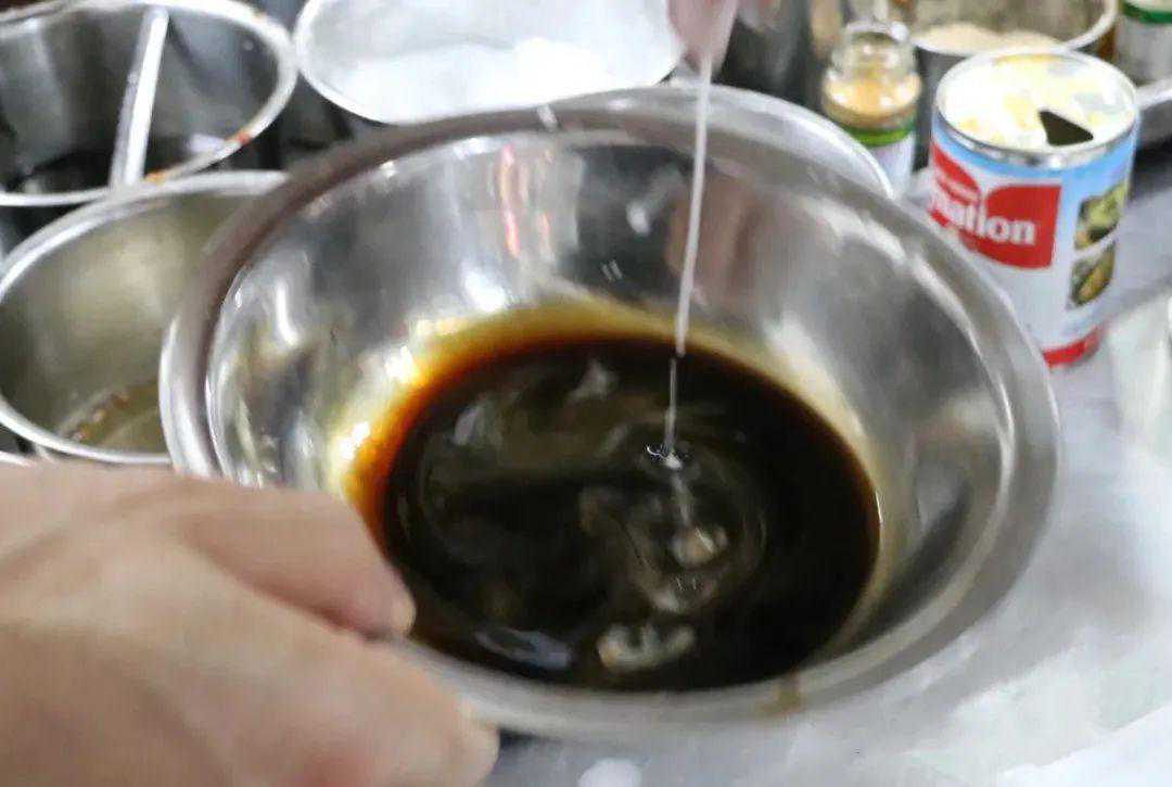 2.制作甜酒汁:甜酒(即醪糟)500克,调入白糖250克、白米醋50克、番茄沙司50克、瓶装糟辣酱20克、二锅头10克、盐5克,小火煮开,勾薄芡即可盛入料盒待用。