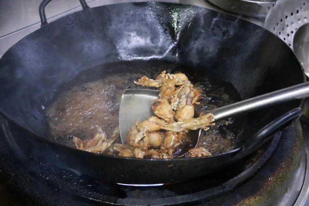 3.牛蛙入锅炸至金黄。