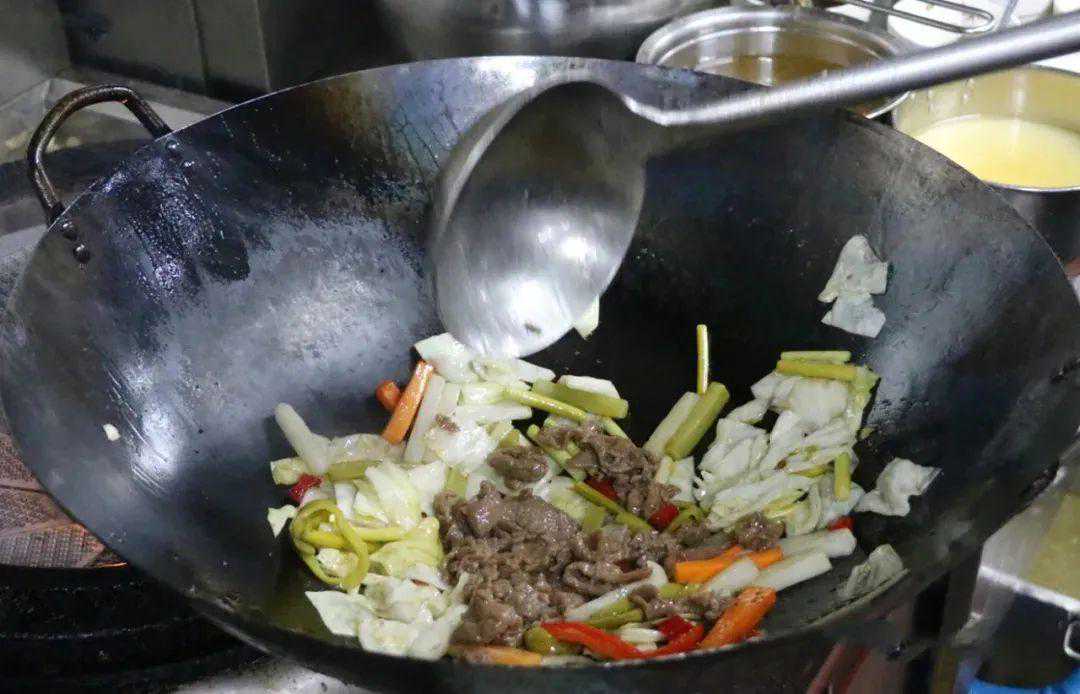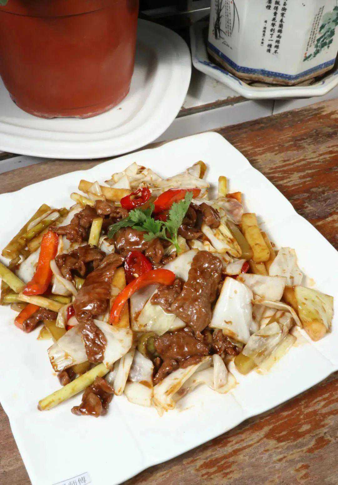 刘师傅自制的这款泡菜,酸爽微辣,颇具桂北风味,煸干后与牛肉同炒,锅气十足。食之泡菜酸香回甜、牛肉软嫩可口,是一道客人接受度极高的特色菜。