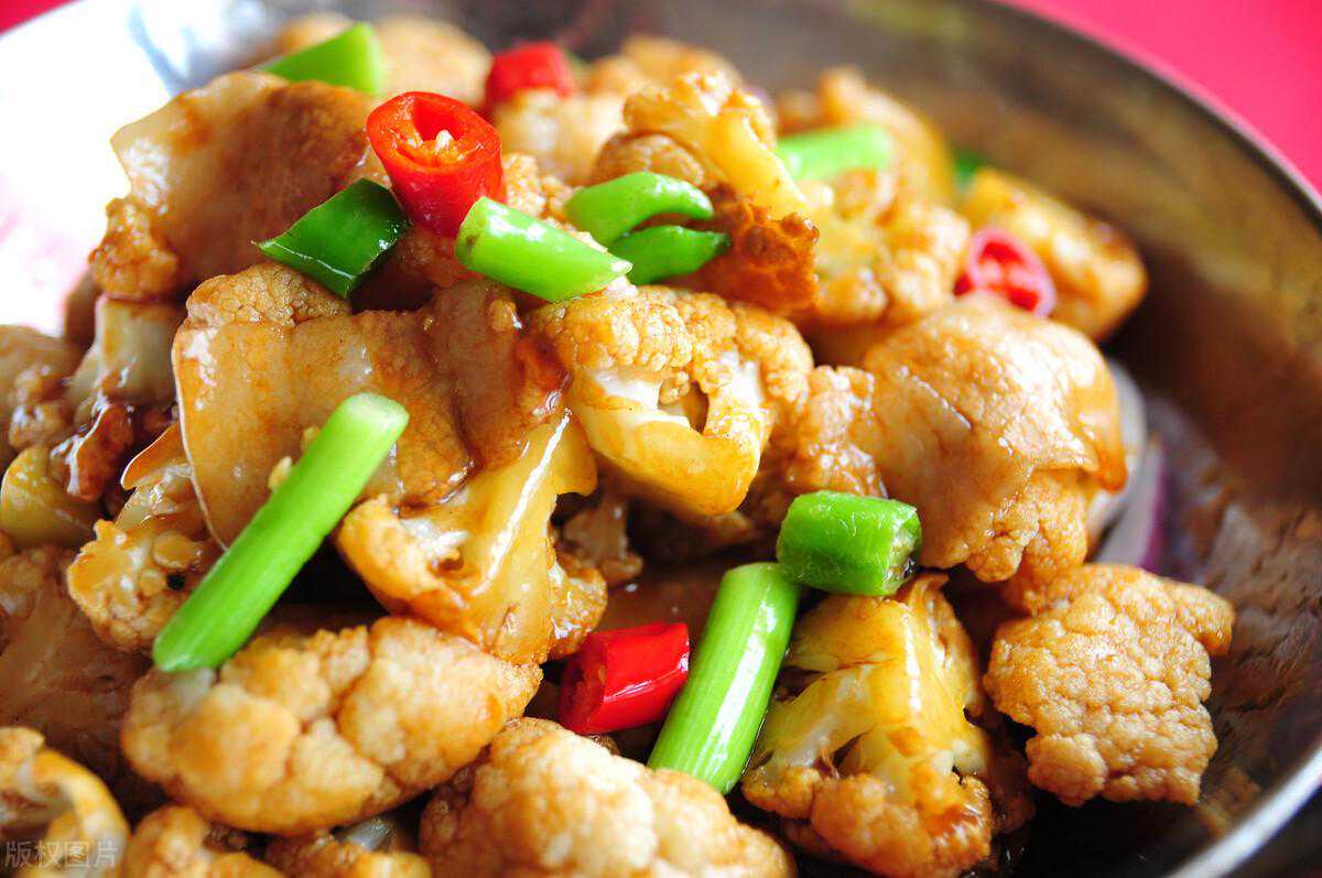〖食材清单〗花菜、五花肉、青红辣椒、盐、大蒜、姜、油、豆瓣酱、生抽、老抽、蚝油、盐、糖、芝麻香油