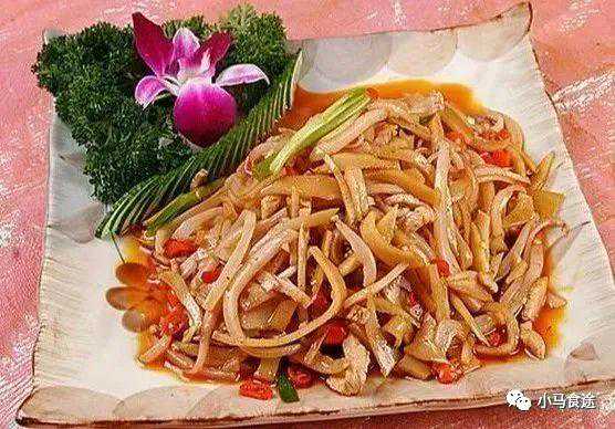1.将猪盖板肉或弹子肉洗净后切成约10厘米长、0.5厘米粗的丝。姜(洗净拍破)、葱、盐、料酒调匀,与肉丝拌匀着味约30分钟。