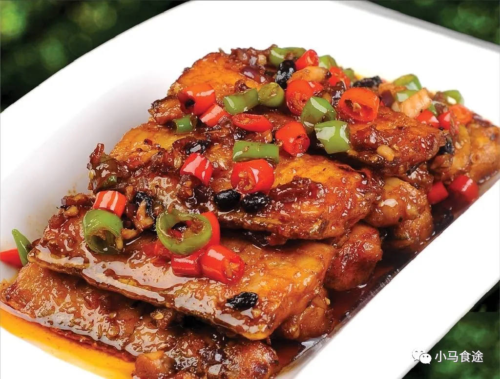 2.锅内放入菜油烧七成油温,放入鱼炸至棕红色时捞出。锅内留油,放豆豉炒至酥香时,起锅装入碗内待用。鱼放入锅内加鲜汤用中火收汁,待锅内汤汁浓稠至一半时,加入油酥豆豉再继续收至汁干亮油后,起锅晾凉,装盘淋上香油成菜。