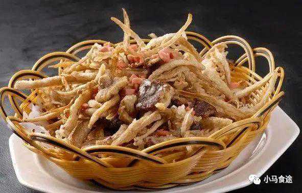 材料:豆腐、鸡糁、鸡蛋、干豆粉、熟火腿、白菜心、盐、白糖、味精、醋、香油、猪肥膘肉、化猪油。