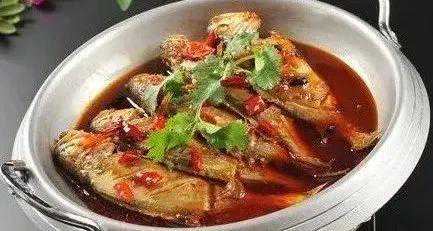 2.油锅用旺火烧熟菜油烧至七成油温时,将鱼炸成棕红色,锅内另换油烧至三成油温,放姜蒜米炒香,加鲜汤、盐、醋。白糖、味精等,再放入炸上色的鱼,用小火收汁入味,放葱花、香油起锅,盛入器内,然后放入熏箱用柏枝微熏一下装盘即成。