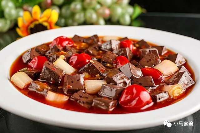 材料:鸭血、泡椒、葱末、姜末、蒜末、盐、味精、胡椒粉、水淀粉、猪骨汤、辣椒油、色拉油。