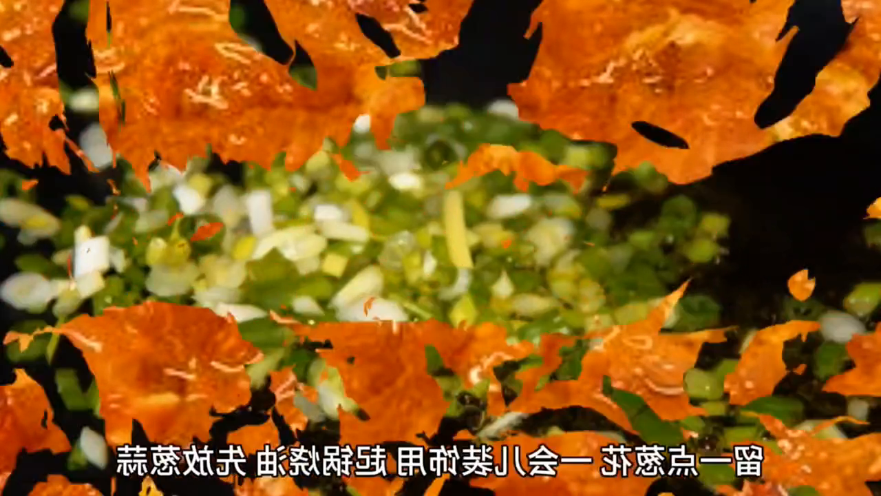 ·把肉片合上一起倒入刚才放蔬菜的大碗中,这时会感觉伤有点粘稠,这属于镇上,因为肉片上有淀粉,锅放入多一点的油,烧热一会,要浇在肉和调料上。片上撒些葱花、蒜末、麻椒粒、花椒粒花椒粉、干辣椒、辣椒粉。