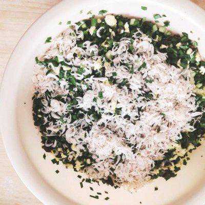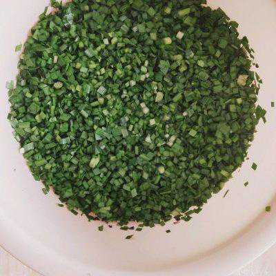 2、将韭菜洗干净,控干水分,切成细小段儿。