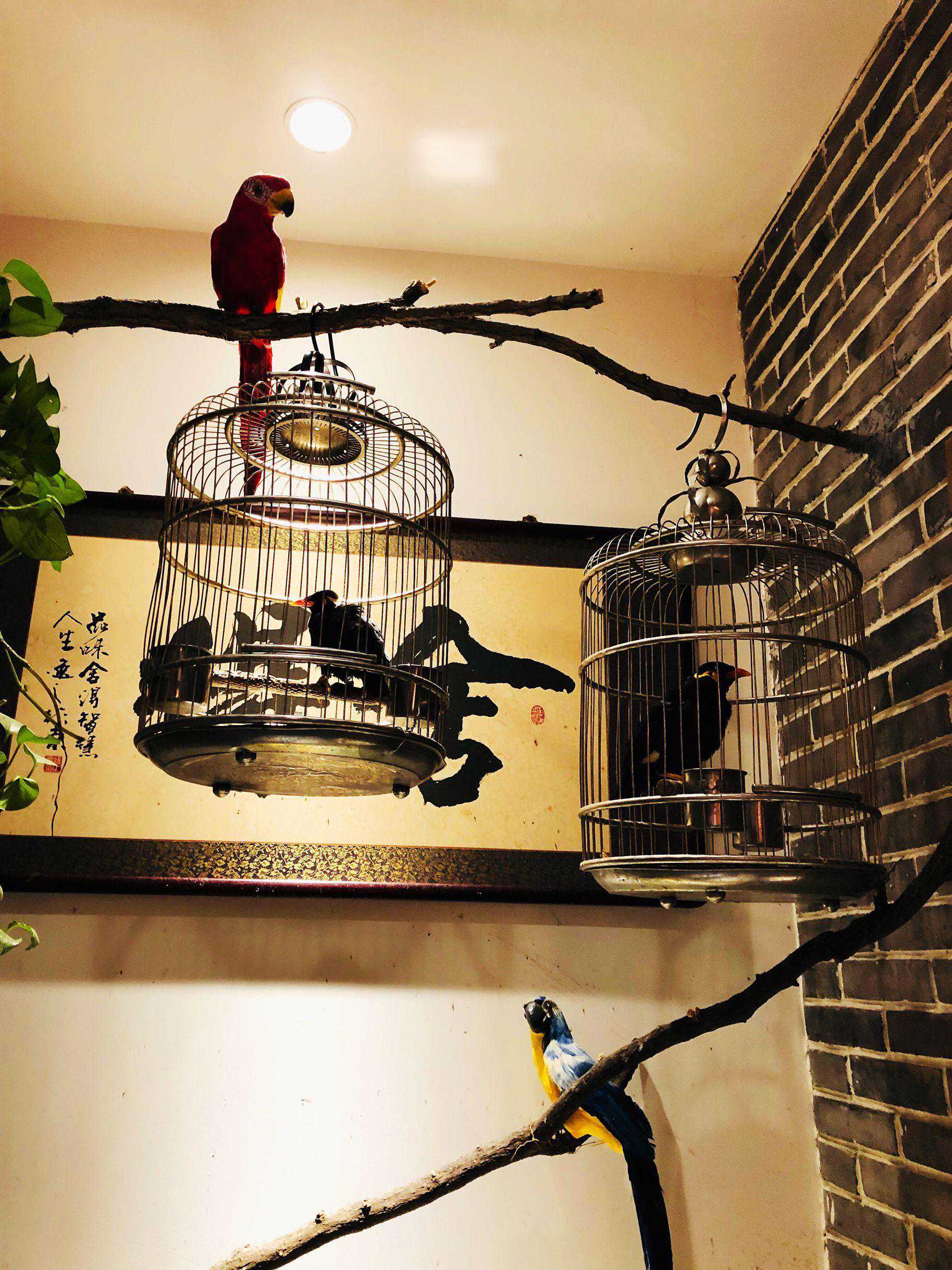 通往卫生间的路上有鹩哥把守,从它身边路过,赶上它高兴了就会主动搭讪调戏你几句,反正口齿不清,也听不太明白它说啥,餐厅里人越多越热闹,它叫的越欢实。