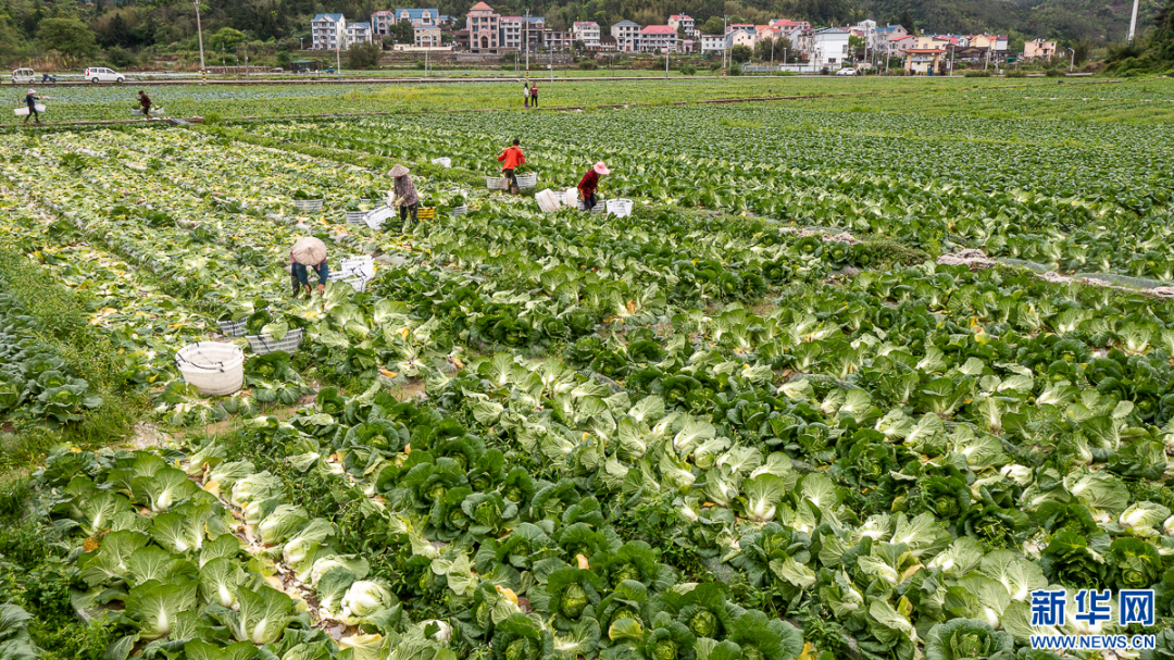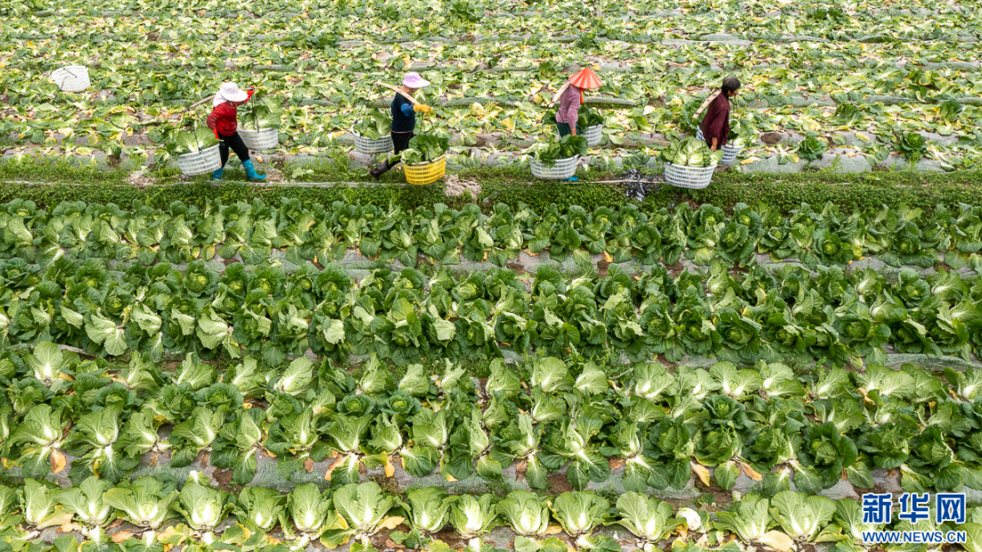 春耕时节“春收”忙。在福建省莆田市涵江区大洋乡稻菜轮作基地,大白菜等叶菜作物相继成熟。田间地头,大白菜叶片紧裹成球状,个大饱满,翠绿鲜嫩。农户正抓紧采收和运输蔬菜,销往全国各地。