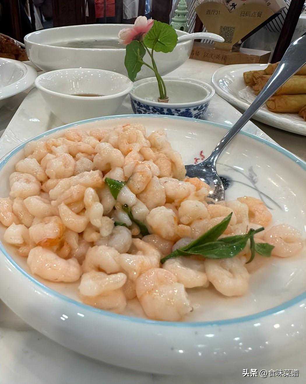 虾仁是这道菜品的主角,它的质量直接影响到整道菜的口感,选用的是河虾,这种虾肉质鲜美,营养丰富,都是手工剥壳,大小均匀。