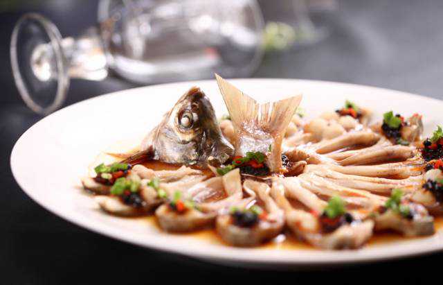 1、白刁鱼装盘,淋上花雕酒,将盐、味精、鸡精均匀地抹在表面,淋上金银蒜油、黄贡椒酱和剁椒酱,撒上水豆豉,浇入高汤,上笼旺火足汽蒸8分钟,至熟透后取出。