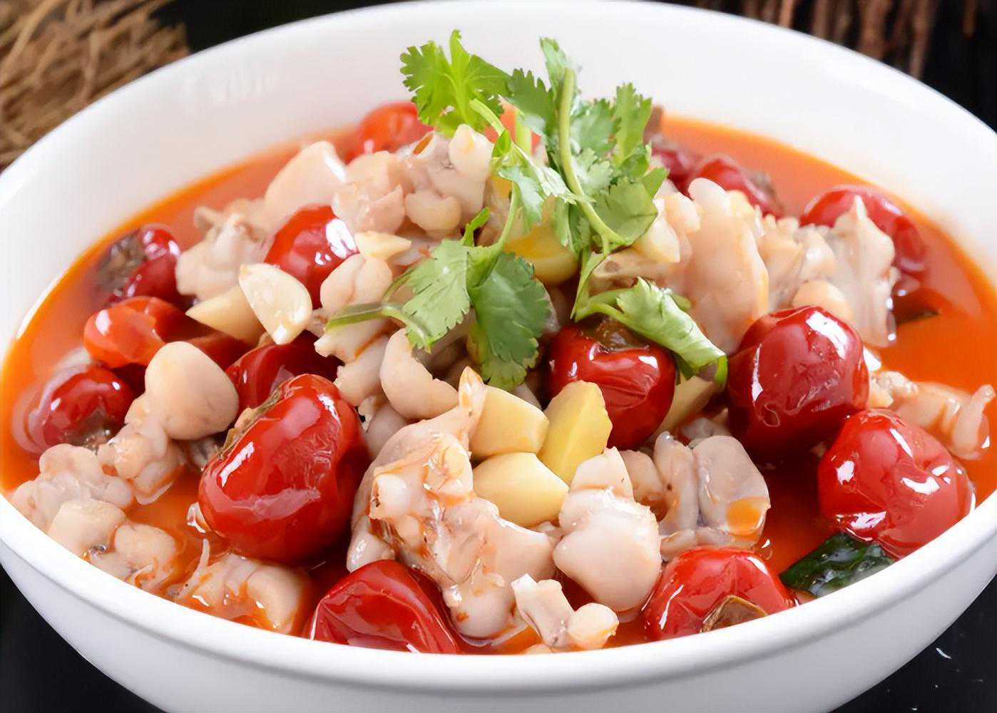 在重庆的黔江地区,当地人喜欢用鸡肝,鸡心,鸡胗等等食材混合切片煨煮,加上土豆,鲜葱,泡椒等食材的混合搭配,风味上面集合辣、酸、鲜、嫩四重口感,无论你是第一次吃还是经常吃,总能在这款美食中品味到不一样的味道。