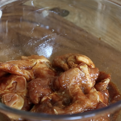 4、肉排里加入适量老抽、生抽、料酒、盐、鸡蛋抓匀,腌制1小时。