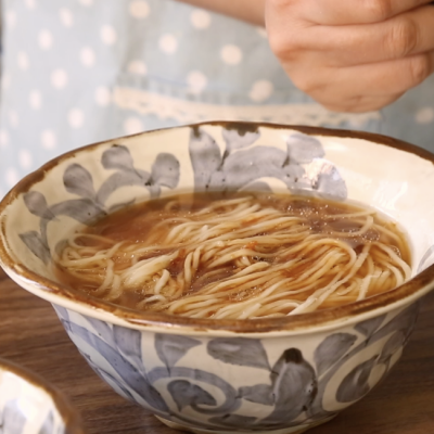 19、再把面捞入碗中。加入一些煮大排的汤汁。