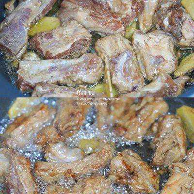 11、把刚刚步骤8炒好的,和排骨一起爆炒,加个糖和盐最后调个味就可以出锅啦!