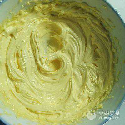5、接着我们来做面皮。软化好的黄油先用打蛋器搅打几圈,使之顺滑